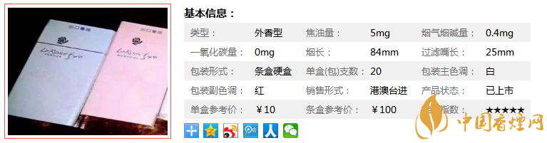香煙定位為女士香煙,從玫瑰這詞就已盡顯女人味.包裝設計時尚優美,粉紅色更顯嫵媚,實在是討好女性煙民,大家看了都喜歡,更別說女人,視覺上的沖擊對女人來說是種致命傷。下面就由香煙網小編帶大家來了解一下520香煙的相關信息。