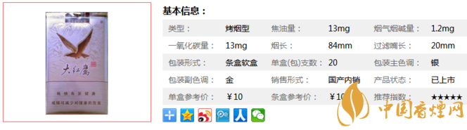 以上便是由香煙網小編為大家介紹的關于大紅鷹軟新品多少錢 大紅鷹軟新品10元一包的相關信息,想要了解更多有關內容請點擊:大紅鷹新安江軟藍香煙價格 大紅鷹新安江軟藍口感及圖片