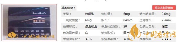 紅塔山HTS都市這款香煙不多見,口感各方面都還不錯,包裝是這款香煙的亮點,深藍色的包裝低調酷炫,視覺沖擊比較強。價格實惠,光看包裝就有想購買的欲望。經香煙網小編市場調查紅塔山HTS都市售價為16元/包。