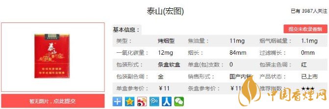 泰山(宏圖)可以說是山東中煙比較盡心之作,從包裝到口感無疑都精心研發(fā),讓煙民也重拾信心。采用雄偉峻拔、氣勢(shì)磅礴的泰山風(fēng)光為商標(biāo)圖案,經(jīng)典形象全新演繹。大氣的包裝,是實(shí)在的口感為消費(fèi)者提供高品位卷煙首選。下面就跟著香煙網(wǎng)小編一起來看看具體的詳情吧。