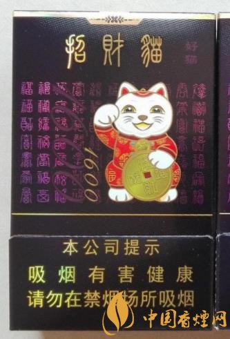招財貓(招財進寶1600)售價為18元/包,非常具有中國傳統的喜慶特色,阿拉伯數字1600,寓意此貓不僅招財而且還會給你帶來甜蜜的生活,口感更綿、更柔、更順煙味醇和,比較細膩,捏完爆珠,這煙很甜,能抽出蜂蜜味道來,但抽多了膩。