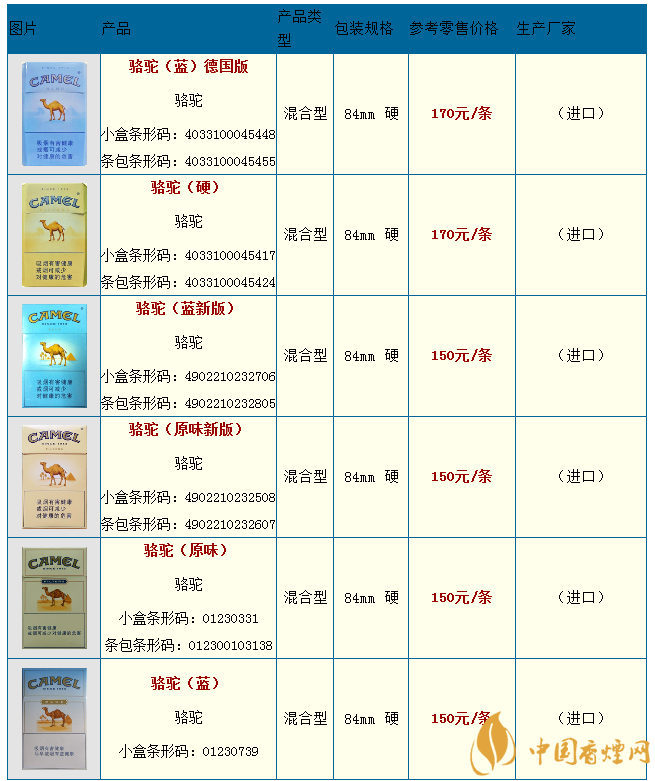 煙民們,你們聽過camel香煙嗎?camel香煙就是聞名世界的駱駝香煙。camel駱駝香煙至今已有百年的歷史了,一些老煙民們或許對這款香煙比較熟悉,現在許多越來越多的香煙出現,一些歷史悠久的香煙品牌逐漸被遺忘,今天小編就為大家介紹一下camel香煙的價格表圖,一起來看看吧。