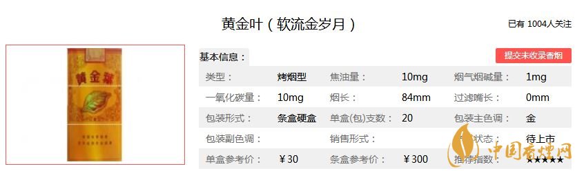 以上便是對黃金葉軟流金歲月香煙的價格及圖片介紹,希望為煙民提供幫助。吸煙有害身體健康,請盡早戒煙。想了解更多黃金葉香煙的相關內容,歡迎點擊:黃金葉香煙價格表大全_黃金葉系列