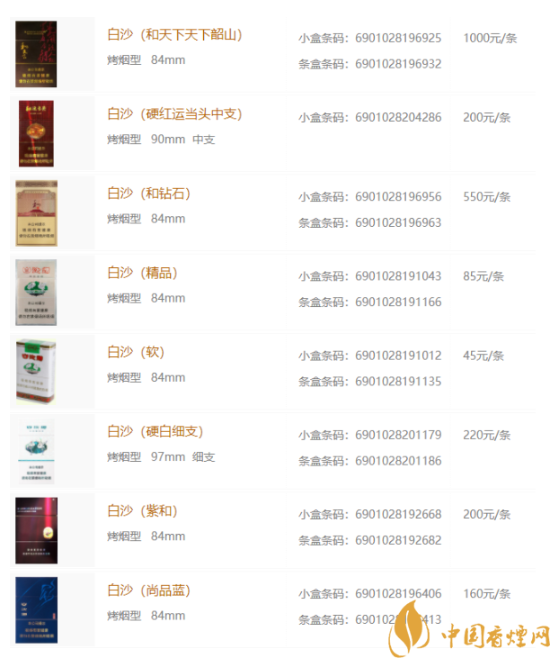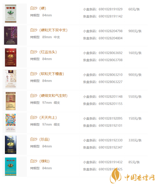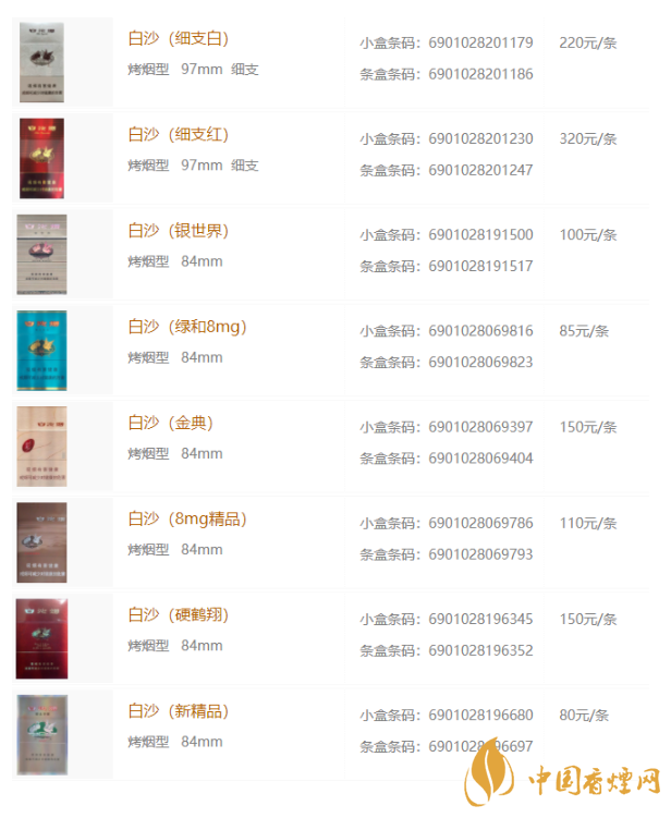 白沙香煙價(jià)格表大全