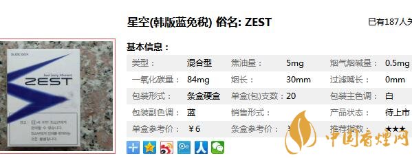 ZEST(星空)是韓國的香煙品牌,是薄荷口味的香煙,煙氣也不太香,薄荷味比較濃郁,但是包裝非常的小清新,比較適合年輕人,下面在對星空香煙價(jià)格表分析之前,先來看一看星空香煙多少錢一包,星空香煙的價(jià)格在10到15元之間,下面就來對這款香煙價(jià)格進(jìn)行一個(gè)具體的分析。