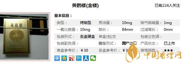 黃鶴樓香煙品牌作為一個歷史悠久的香煙品牌,它在國內香煙市場上的地位非常關鍵,它是代表著湖北香煙,而黃鶴樓香煙產品也是國內最多的,那么在介紹黃鶴樓金樓價格圖片之前,我們先了解一下這款黃鶴樓金樓多少錢一盒,這款香煙的售價為30元/包。