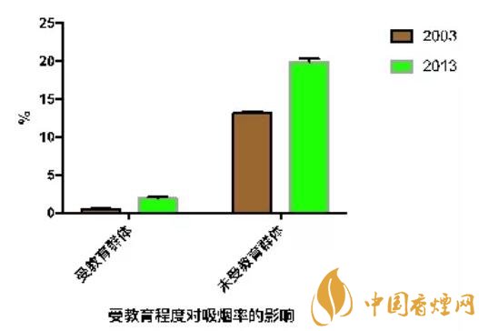 研究結(jié)果顯示,2003年,2008年以及2013年我國(guó)的煙民比例分別為26.0%,24.9%,25.2%,始終高居不下。2003年,男性煙民的數(shù)量相對(duì)較高(48.4%)。女性群體的煙民比例則相對(duì)較低(3.1%)。