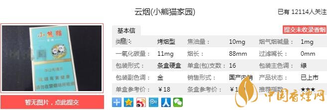 云煙小熊貓家園煙支長88mm,小熊貓家園的卷接裝材料科技感十足。研發者們采用了先進的接裝紙涂布技術,獨具匠心地在濾棒接裝紙上添加了氨基酸,經過處理之后的濾棒接裝紙能讓小熊貓家園的煙支散發出更柔和的煙氣。下面我們一起來看云煙小熊貓家園的參數信息:焦油量:10mg 煙堿量:1.0mg 一氧化碳量:11mg