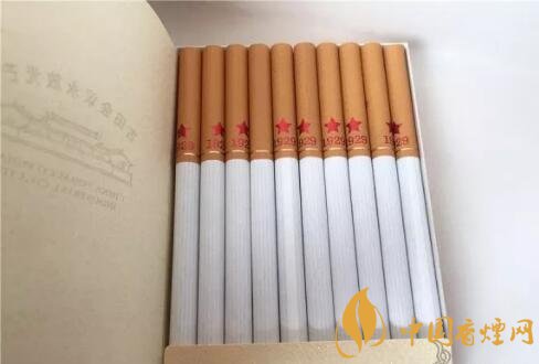 側開式煙盒設計,煙盒蓋內部是紅色并印著金色五角星和1929,煙支被一張很具有復古色彩的紙張覆蓋著,上面有八個大字“古田會議永放光芒”,給人一種看黨章的感覺,設計簡約而不簡單。經香煙網小編市場調查古田金中支售價為50元/包。