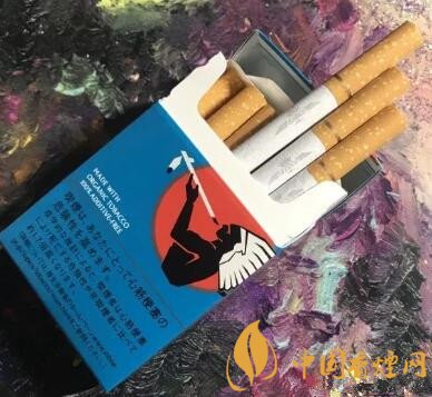 煙盒主色調(diào)藍色加上印第安人的logo。