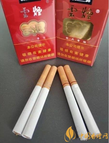 煙嘴上的文字皆一樣,從上往下是“雲煙”兩個字,成階梯形排列。在煙嘴表面的下部,各有一道圓箍,顏色與煙盒正面的logo的顏色相呼應。