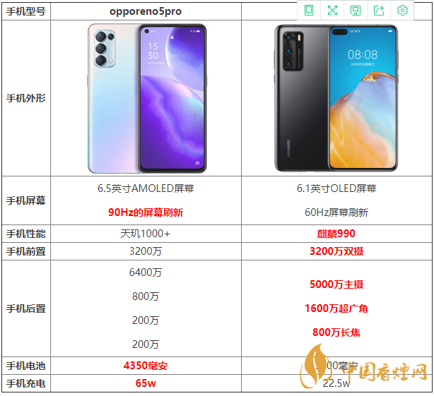 opporeno5pro與華為p40哪款手機更值得入手?這兩款手機在參數方面有什么區別?哪款手機的性價比更高?下面香煙網小編為大家帶來opporeno5pro與華為p40參數對比,感興趣的朋友快來看看吧。