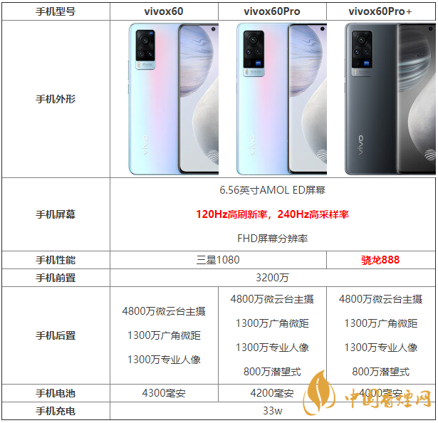 小結:這三款手機的屏幕參數相同,為用戶帶來120Hz的屏幕刷新,為用戶帶來更好的手機屏幕色彩展示