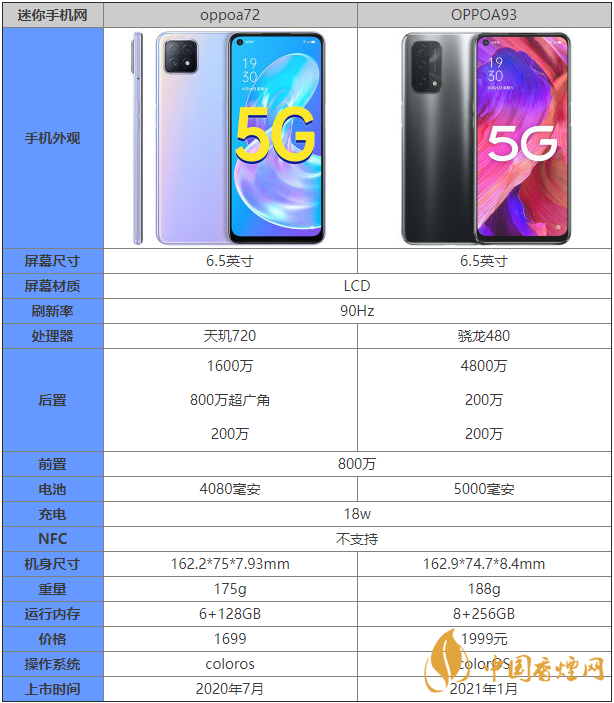 oppoa93和oppoa72參數對比