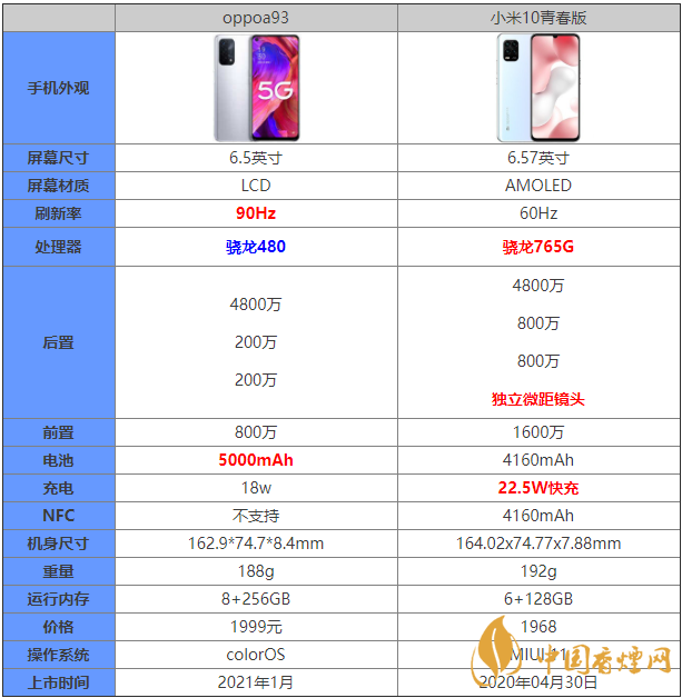 oppoa93和小米10青春版哪個好?這兩款手機價位都在千元機的范疇,那么oppoa93和小米10青春版有什么區別?哪款手機更值得入手?接下來香煙網小編為大家帶來了oppoa93和小米10青春版對比詳情,感興趣的朋友一起來看看吧!