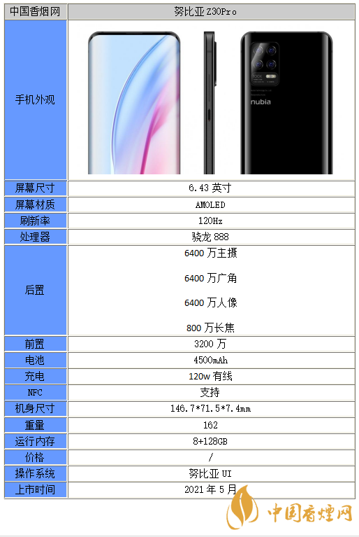 以上就是小編收集到的努比亞z30Pro手機怎么樣-努比亞z30Pro參數配置一覽的相關內容,以上內容均來源于網絡,僅供參考,一切以實際為準,更多最新數碼資訊請關注香煙網。