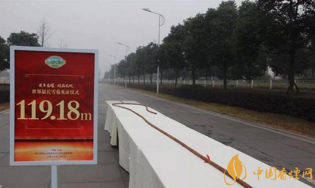 2018年2月8號(hào),這款雪茄在四川中煙工業(yè)有限責(zé)任公司長城雪茄煙廠驚艷亮相,打破了此前由古巴人保持的81.8米世界吉尼斯紀(jì)錄,成為中國雪茄的第一個(gè)“世界之最”。據(jù)悉,該雪茄將在中國雪茄博物館永久陳列,并將由專人進(jìn)行定期養(yǎng)護(hù)。