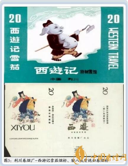 湖北利川卷煙廠出品的“西游記”套標中有一枚煙標以人格化的豬-豬八戒為主圖,該煙標上的豬八戒憨態可掬,惟妙惟肖,還有另一款豬八戒背媳婦,圖中豬八戒背著一名女子騰云駕霧,略偏頭向后嘴巴微張似正與女子攀談,女子手持蒲扇,一幅神態自若的樣子。